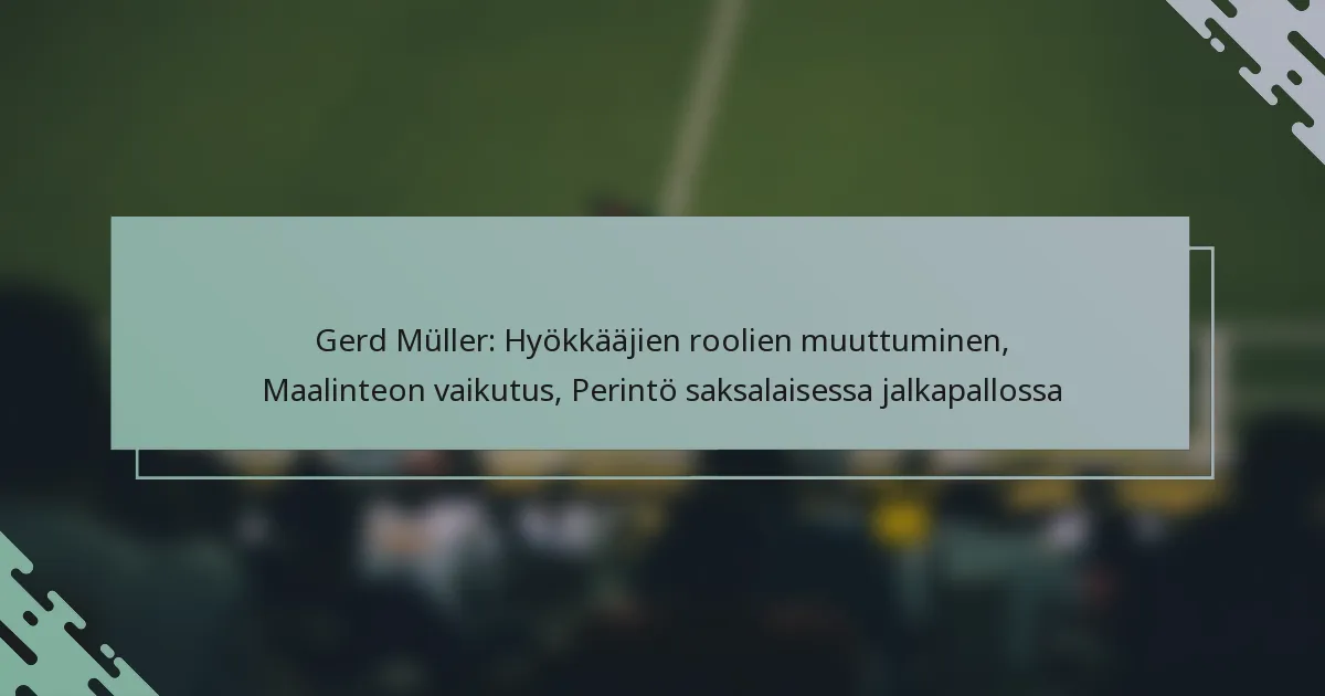 Gerd Müllerin perintö saksalaisessa jalkapallossa määritellään hänen poikkeuksellisella maalintekotaidollaan, keskeisellä roolillaan maajoukkueessa ja kestävä vaikutuksensa lajiin. Hän muutti hyökkääjän asemaa ja asetti maalinteossa mittapuita, jotka resonoivat jalkapallossa tänään.