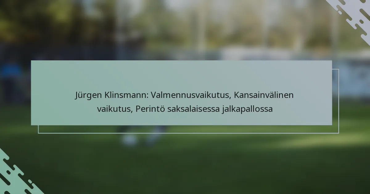 Mikä on Jürgen Klinsmannin valmentava vaikutus jalkapallossa?