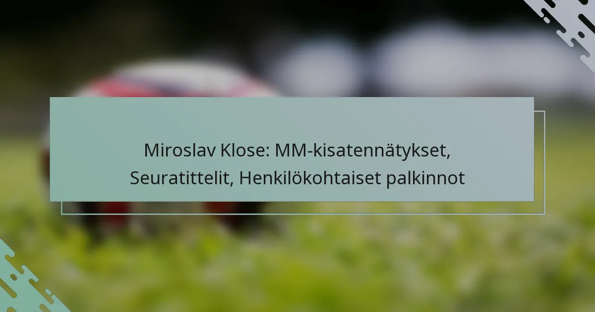 Miroslav Klose nautti menestyksekkäästä seuraurasta, voittaen lukuisia titteleitä eri liigoissa. Hänen saavutuksiinsa kuuluu kotimaan liigan mestaruuksia, kansallisia cup-voittoja ja kansainvälisiä seurakilpailuja, mikä osoittaa hänen vaikutuksensa tuotteliaana hyökkääjänä.